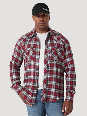 Men S Wrangler Retro Long Sleeve Flannel Western Snap Plaid Shirt
